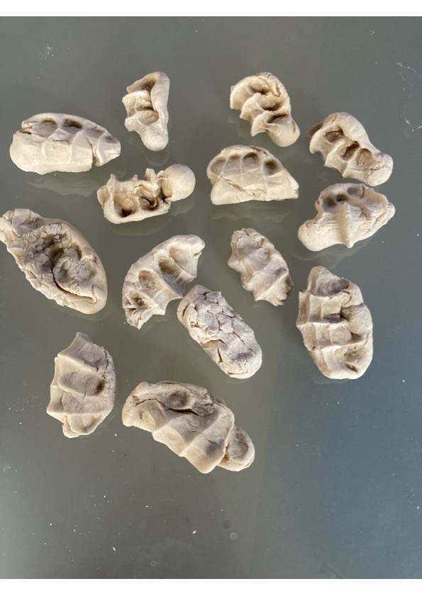 Next we ventured out to the Zoology museum at Dundee University. A fascinating venue and Hope managed to get a few victims for us to practice on. The dough shapes had a distinctly fossil like appearance.
